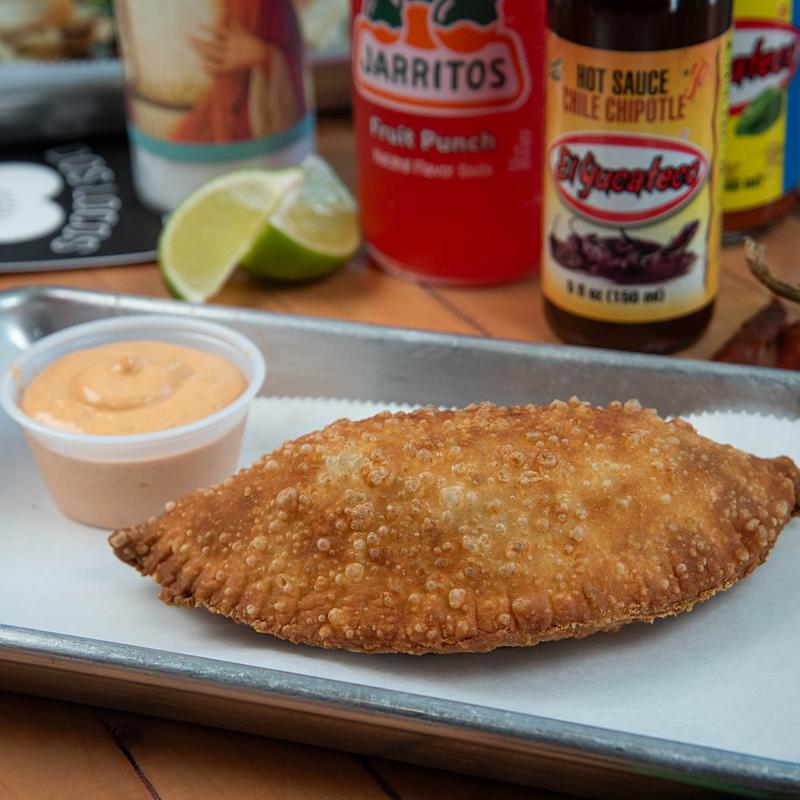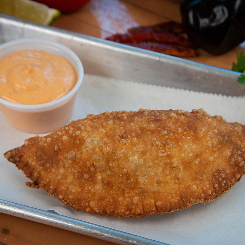 Traditional South American hand pie, stuffed with beef chorizo and assorted vegetables.